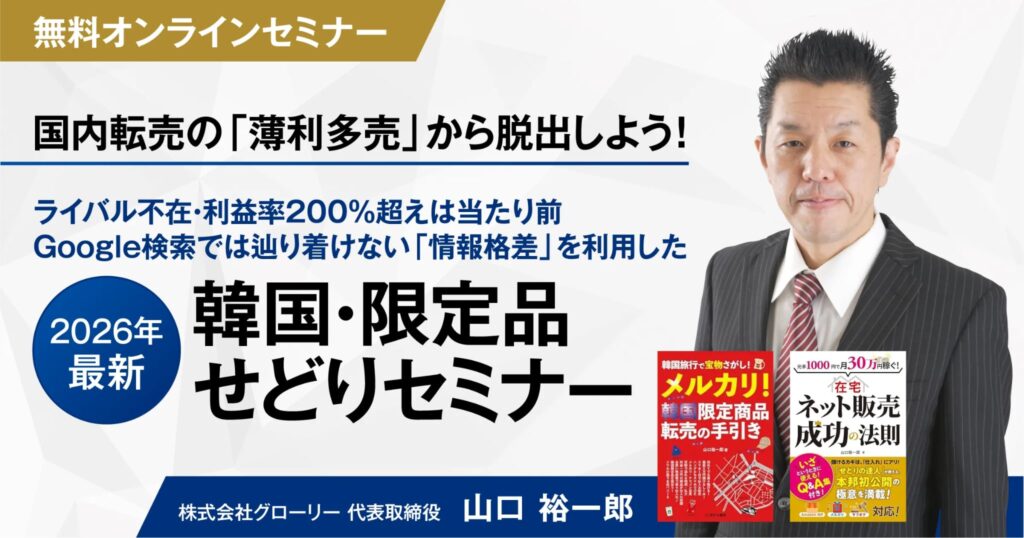 「物価差」「参入障壁の高さ」が大きな違いです。ライバルが少ない「ブルーオーシャン」で、国内転売ではありえない高い利益率(一撃数万円の利益実績あり)を出す手法を公開します。