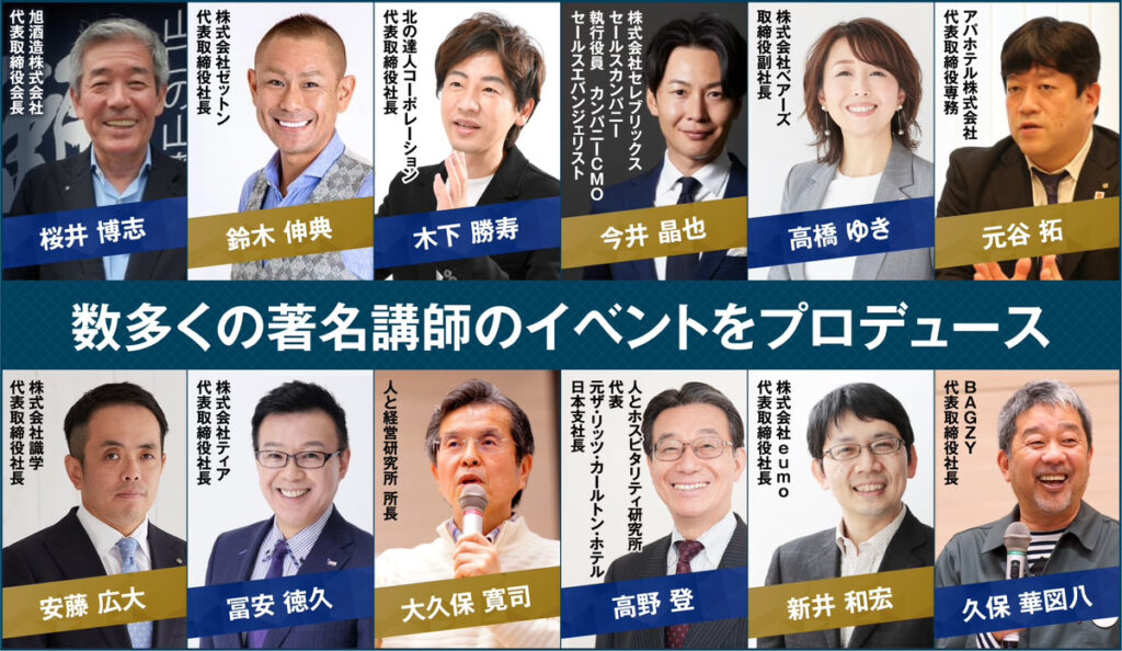 セミナー・イベントの企画から制作、運営までを行うセミナー・イベントプロデューサー。セミナーや講演会、パーティなどのプロデュースを始め、現在までに自身がプロデュースしたセミナー・イベントは1500本を超、3万人以上を動員。セミナーやイベントを活用した顧客創造と売上拡大を得意とし、現在はセミナープロデュースにとどまらず、企業のマーケティング戦略立案なども行う。「価値が正しく評価される社会」の実現に向けて、日々活動中。